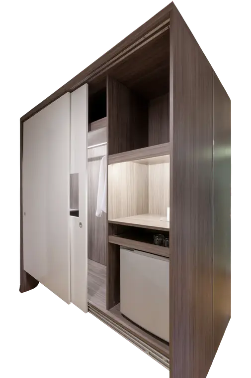 A freestanding wardrobe with a tropical touch, featuring natural cane panels, shutter doors, or full teak surfaces. Practical and elegant — ideal for both modern and traditional interiors.